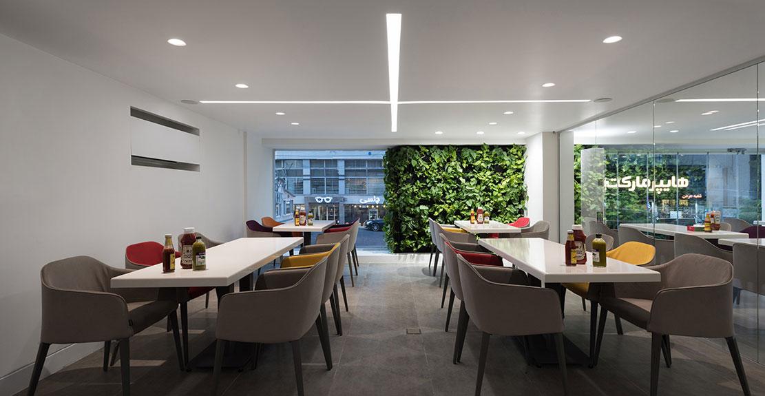 کانسپت معماری فست فود باگت ایجاد فضایی خانوادگی و دوستانه به همراه دیوارههای سبز است. برای نورپردازی این فضا تصمیم بر این شد تا لایه نور عمومی روشنایی کلی فضا را تامین کند و در کنار آن با روشنایی غیر مستقیم سطوح عمودی علاوه بر روشنایی بهتر فضا، دیوارههای سبز بصورت یکنواخت از بالا تا پایین روشن شوند. نورپردازی سطوح عمودی حس روشنایی بیشتری به فضا میدهند و باعث عمق بخشیدن به فضا میشوند.